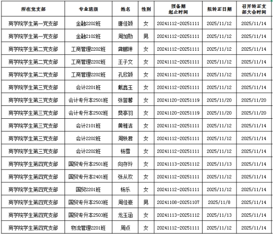 公示期为2025年11月1日至2025年11月7日,共七天,欢迎广大党员和群众予以监督评议。公示期间如有不同意见,请本着实事求是、认真负责的原则,署真实姓名和联系方式,及时向威廉希尔WilliamHill官方网站党委、威廉希尔WilliamHill官方网站学生党支部如实反映,便于党组织调查核实。