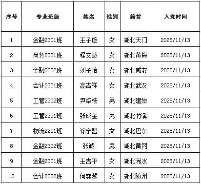 根据发展党员工作有关规定,王子璇等10名发展对象政审、预审、联审合格,威廉希尔WilliamHill官方网站各学生党支部于2025年11月13日召开支部大会讨论接收为中共预备党员。现将其有关情况公示如下:![]()