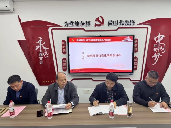 袁建明同志对新党员同志们提出四点希望和要求。一是要坚定理想信念,筑牢信仰之基。作为一名共产党员,要坚守共产主义远大理想和中国特色社会主义共同理想,自觉用党的创新理论武装头脑,深刻理解党的基本理论、基本路线、基本方略,不断增强四个意识、坚定四个自信、做到两个维护。要始终保持对党的忠诚,在大是大非面前旗帜鲜明,在风浪考验面前无所畏惧,永葆共产党人的政治本色。二是要加强理论学习,提升党性修养。组织上入党一生一次,思想上入党一生一世。希望新党员同志把学习作为一种习惯、一种责任,持续深入学习党的历史、党的章程、党的纪律,学习马克思主义立场观点方法,不断提高政治判断力、政治领悟力、政治执行力。同时积极参加党组织的各项活动,严肃党内政治生活,在实践中锤炼党性,时刻以党员标准严格要求自己,做到言行一致、表里如一。三是要勇于担当作为,发挥先锋作用。党员身份不仅是荣誉,更是责任和奉献。希望新党员同志牢记全心全意为人民服务的根本宗旨,立足本职岗位,刻苦学习专业知识,锤炼过硬本领,在学术研究、社会实践、服务师生等方面走在前、作表率。要敢于承担急难险重的任务,勇于在困难面前挺身而出,以实际行动诠释共产党员的先进性和纯洁性,努力成为同学们身边的榜样,带动周围同学共同进步。四是要严守党的纪律,锤炼优良作风。党的纪律是党的生命线,也是每位党员必须遵守的行为规范。新党员同志要自觉学习、遵守、贯彻、维护党章,严格执行《关于新形势下党内政治生活的若干准则》和《中国共产党纪律处分条例》等党内法规,知敬畏、存戒惧、守底线。要培养高尚的道德情操,自觉抵制不良风气,清清白白做人、干干净净做事,维护共产党员的良好形象。他强调,正值学校百廿校庆之际,全体党员要凝聚共识,戮力同心,为推进学院各项事业高质量发展,为实现中华民族伟大复兴的中国梦贡献自己的青春、智慧和力量。