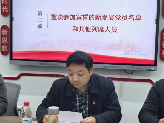 院党委副书记李传坤同志宣读参加宣誓的新发展党员和列席人员名单。