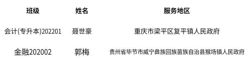 祝贺两位校友!愿他们在新的征程上继续发光发热,也期待更多商院青年以优秀校友为标杆,把小我融入大我,到祖国最需要的地方建功立业,书写无愧于时代的青春篇章!