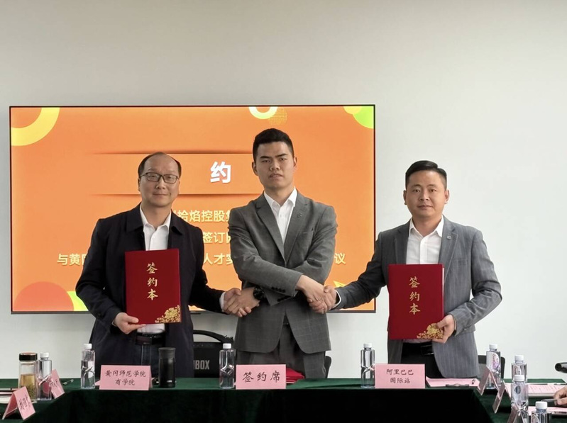 仪式现场,院长王庆与产业园运营方杭州拾焰控股集团相关负责人共同签署战略合作协议。根据协议,双方将秉持“发挥优势、相互促进、互利共赢”的原则,聚焦跨境电商领域人才培养、技术转化、实践基地建设等核心领域,构建全方位、多层次、可持续的校地协同创新体系,共建跨境电商人才实训基地,整合学院教学资源与园区产业优势,将行业前沿动态、实战案例融入教学体系,推行“真题真做”教学模式,着力培养理论扎实、实践能力强的高素质跨境电商人才;同时,开展聚合式产业生态合作,联动阿里生态头部资源,推动学院学科专业优势与企业实际需求精准对接,助力“黄冈制造”和“大别山优品”走向全球。